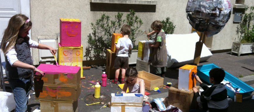 Un autre atelier s’est constitué pour fabriquer un géant de feu ! Pour cela il faut beaucoup de cartons... Puis les parents se sont joints à l’équipe pour préparer les stands. Pique nique et bonne humeur car... il faisait beau ! Prochain rendez-vous : 23 juin : toutes les aides sont les bienvenues.